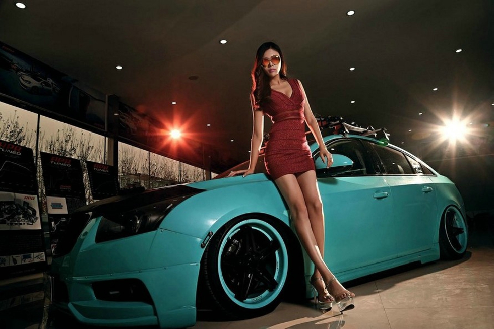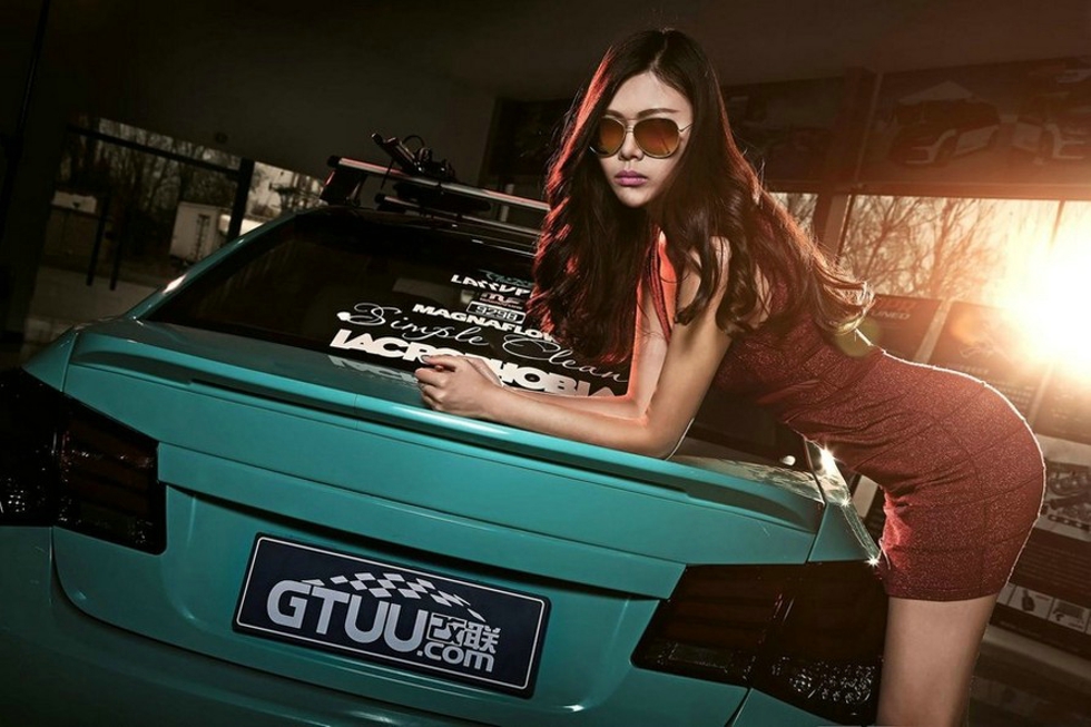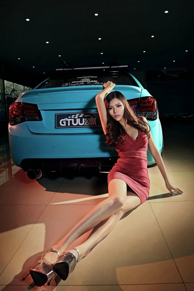 改装车惹火冷艳美女车模美腿高跟鞋火辣妖艳销魂诱人写真